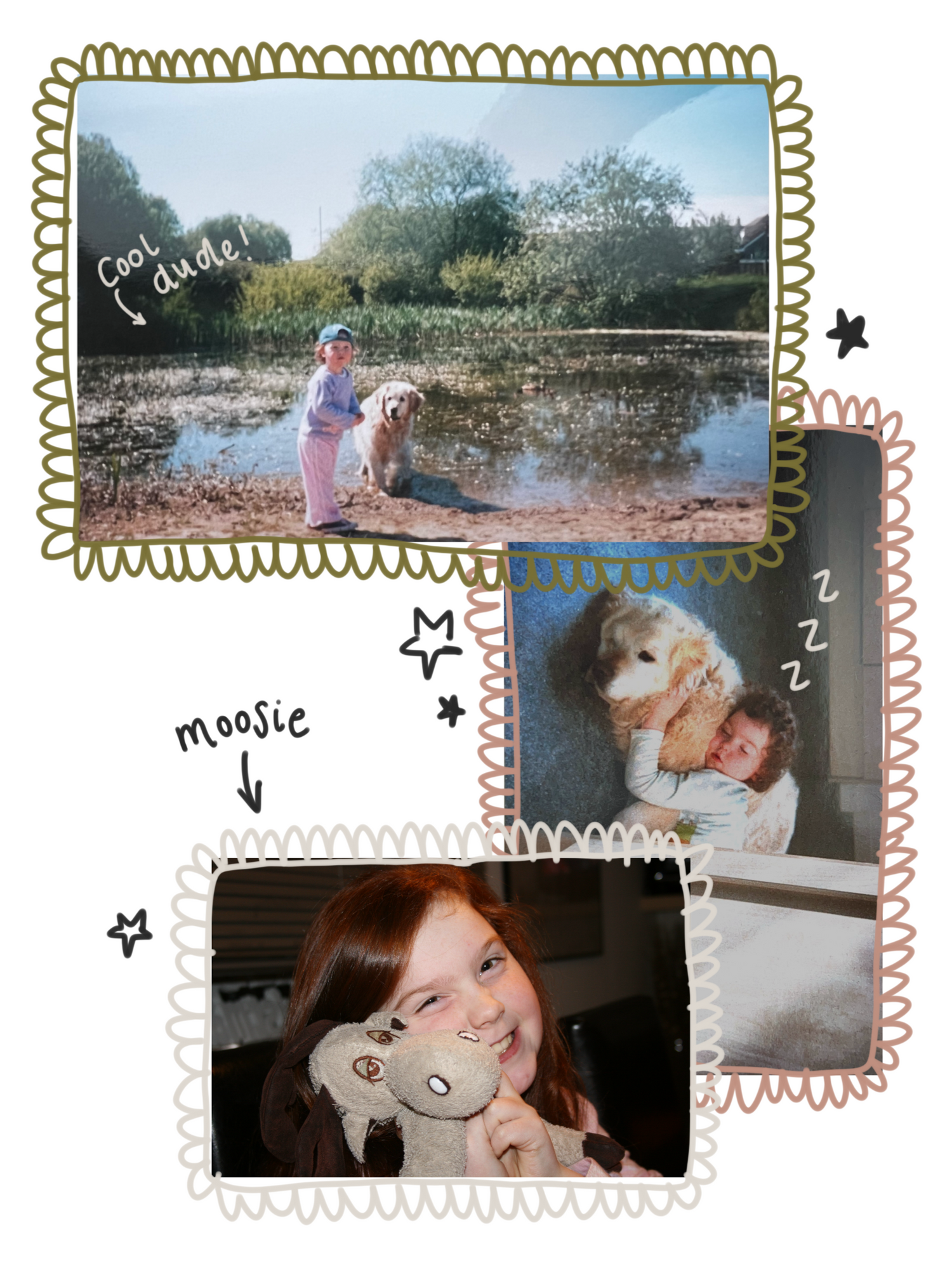 As well as growing up with golden companions, my best friend was a Chad Valley Chocolate Moose toy that I called Moosie. Moosie still guards my big girl bed, and so naturally influenced my small business name, Studio Moosie!