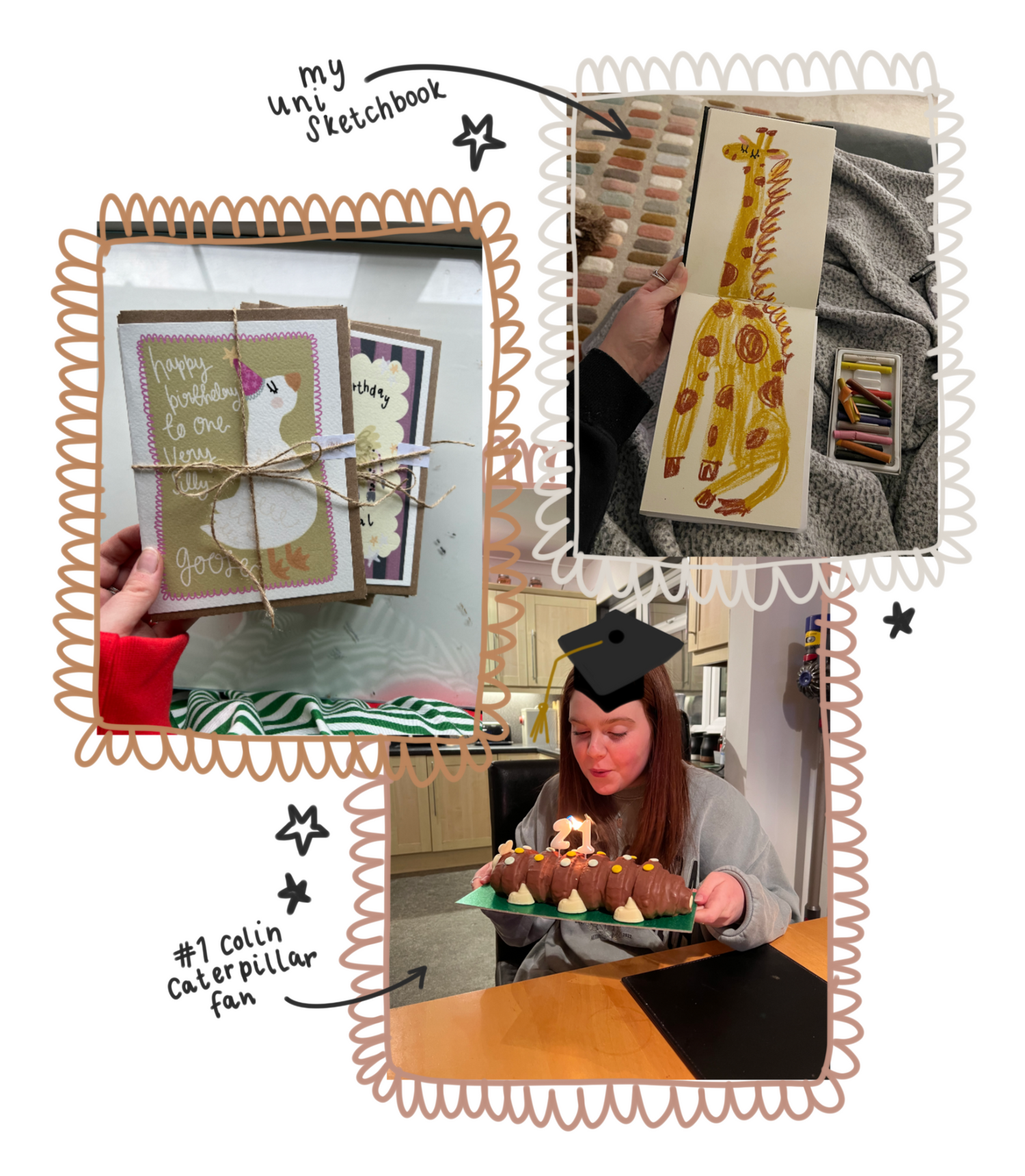 In June 2024 I graduated from the University of Gloucestershire and have since been working on Studio Moosie. I book myself into lots of markets and keep trying to master the art of becoming 'viral on tiktok '. 👩🏻🎓
